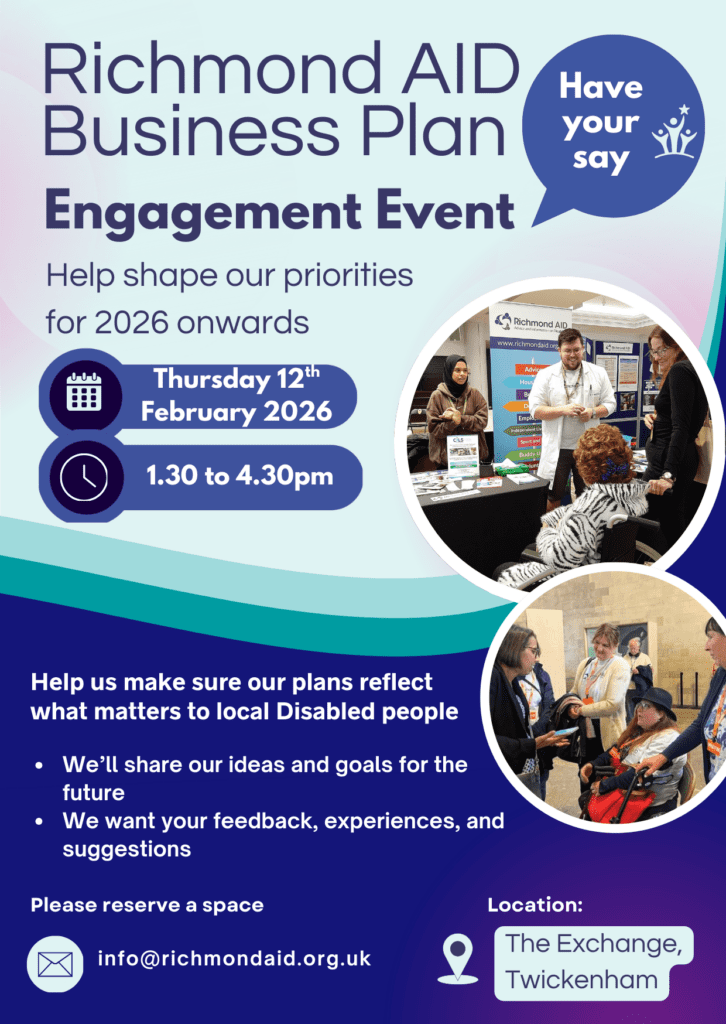 Join us at our friendly Business Plan Event for 2026 onwards where you can be involved in the future of Richmond AID. We’ll share our ideas and goals for the future
